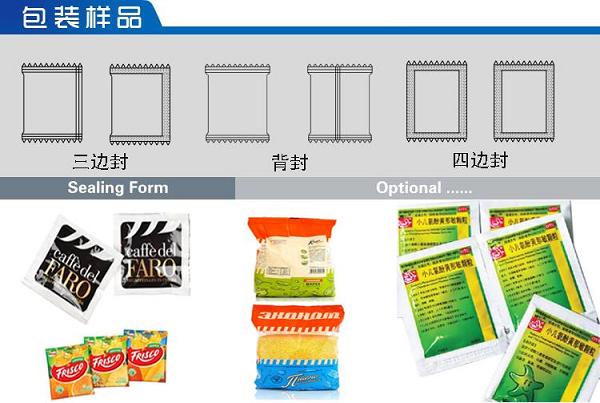 該機適用于包裝各種顆粒、粉混合物料。如:沖劑、麥片、白砂糖、味精、調味品、奶粉、豆奶粉、果仁、巧克力豆、咖啡、藥粉等物料實行全自動包裝。