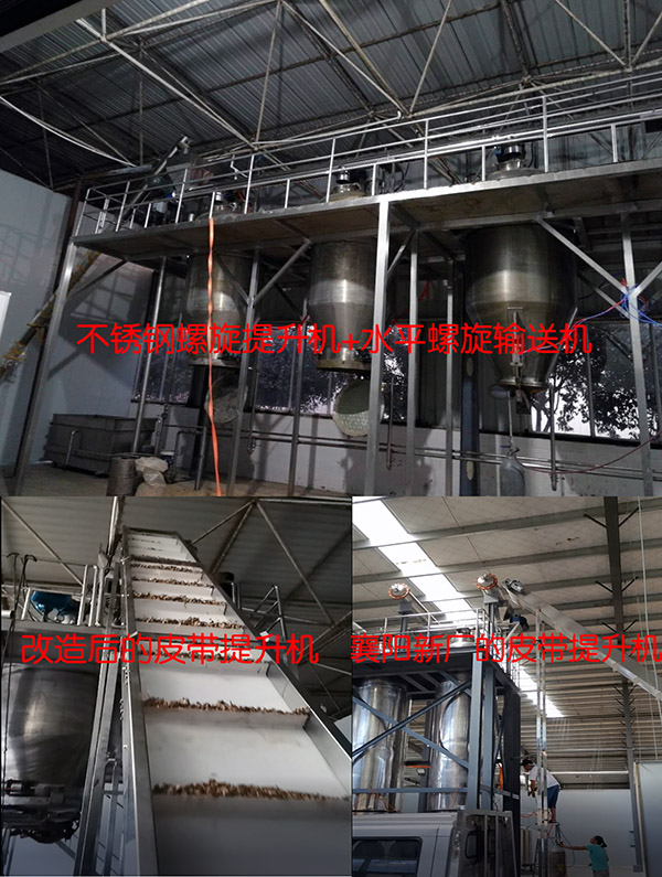 這個(gè)有很多了,皮帶提升機(jī)、連續(xù)斗式提升機(jī)、Z型提升機(jī)等等都可以,上面案例中說(shuō)說(shuō)的客戶最后選擇的就是用皮帶提升機(jī)取代螺旋提升機(jī),成本低、效率高。另外他們?cè)谙尻?yáng)新建分廠的反應(yīng)釜集中加料系統(tǒng)還是選的我們做,依然是斜式皮帶提升機(jī)+水平螺旋輸送機(jī)的經(jīng)典組合。